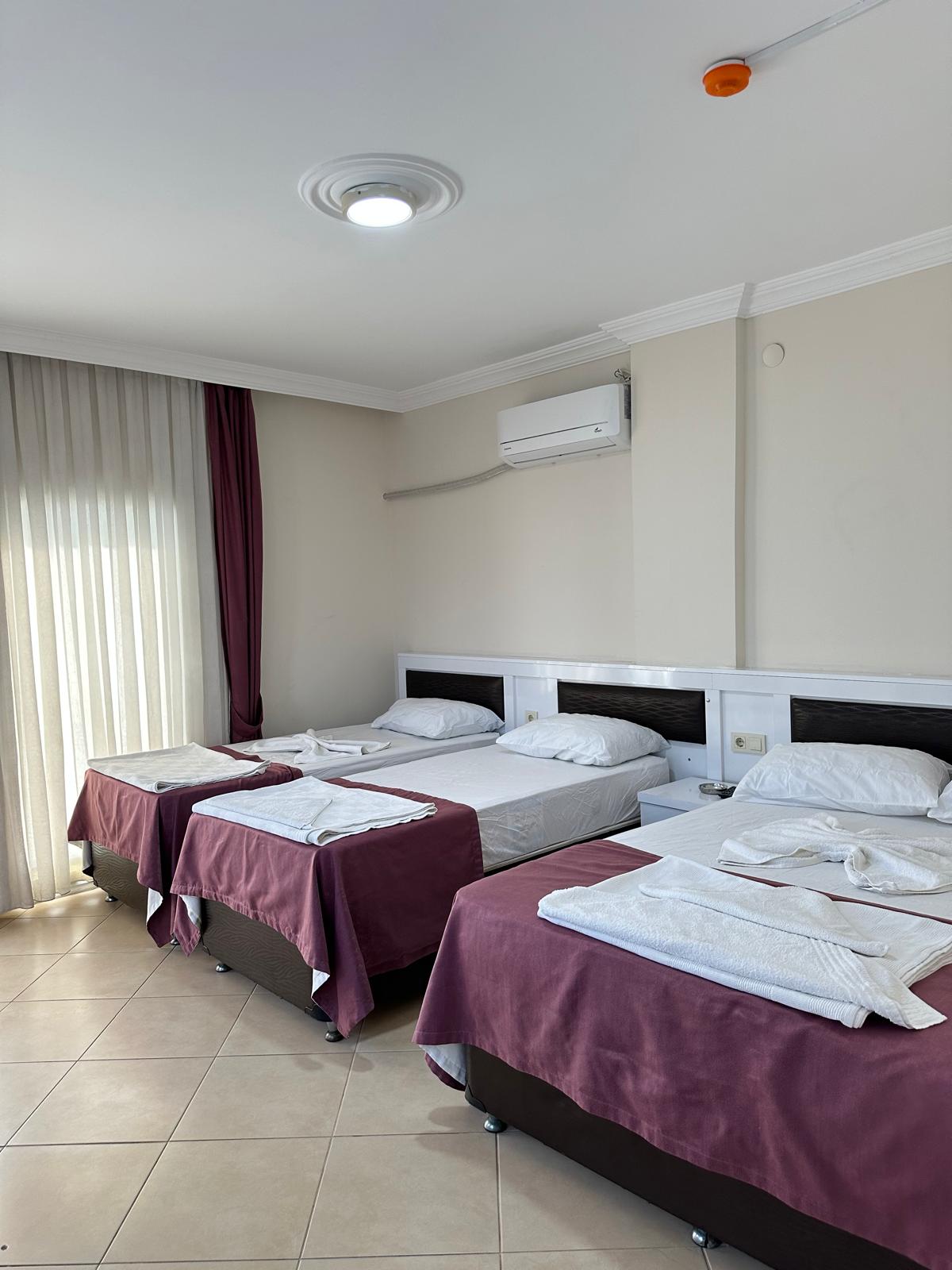 Kızkalesi’nde deniz manzaralı 4 kişilik odamız, kalabalık aileler ve arkadaş grupları için konforlu bir tatil imkânı sunar. Odamızda 2 adet çift kişilik yatak, klima, mini buzdolabı, LCD TV, makyaj masası ve geniş elbise dolabı mevcuttur. Balkonundan Kızkalesi plajı ve deniz manzarasını izleyebilir, huzurlu bir konaklama deneyimi yaşayabilirsiniz. Modern banyosunda duşakabin, lavabo, saç kurutma makinesi ve 24 saat sıcak su bulunmaktadır. Temizlik ve müşteri memnuniyeti her zaman önceliğimizdir.