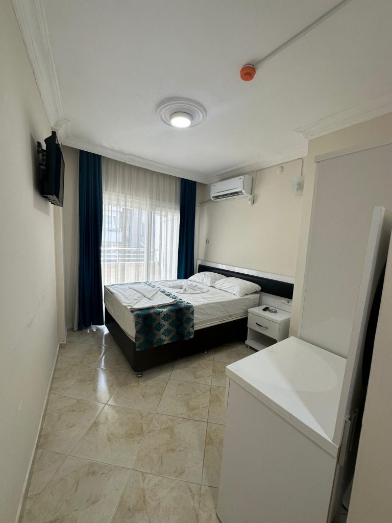 Kızkalesi merkezde yer alan standart çift kişilik odamız, hem çiftler hem de tek konuklar için ekonomik ve rahat bir konaklama seçeneği sunar. Odamızda 1 adet çift kişilik yatak, klima, LCD TV, mini buzdolabı, makyaj masası ve gardırop mevcuttur. Balkona açılan geniş pencereler ile ferah ve aydınlık bir ortam sunar. Banyoda duş, lavabo ve 24 saat sıcak su hizmeti bulunur. Uygun fiyatlı tatil arayanlar için ideal bir tercihtir.